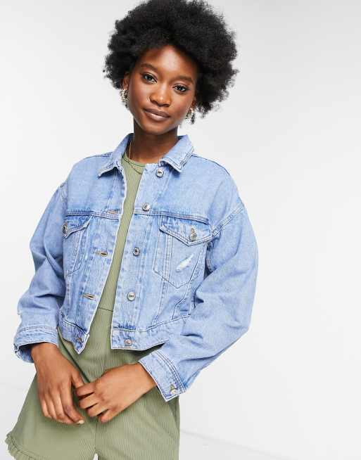 Stradivarius Veste en jean courte oversize Bleu ASOS Very well made.