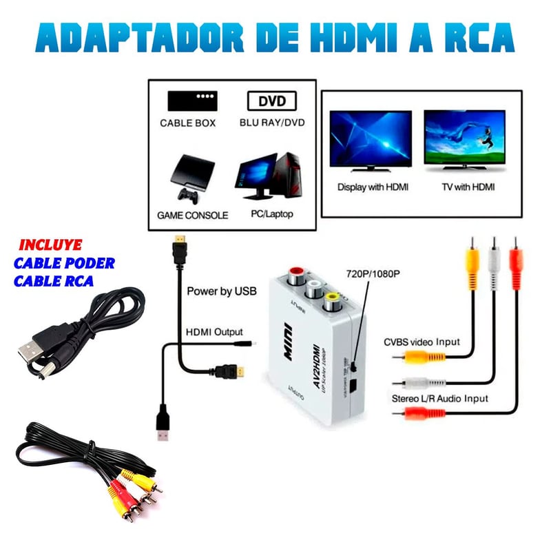 Adaptador rca a hdmi conversor convertidor cable video 720 1080 p Very well made.