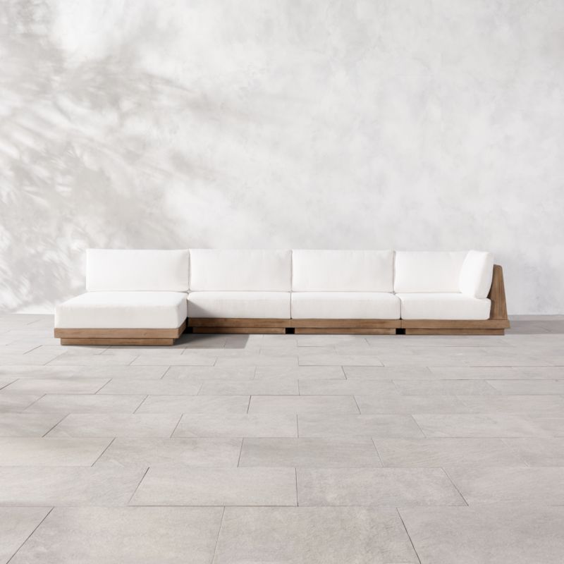 Cabra 5 Piece L Shaped Teak Outdoor Sectional with Grey Sunbrella Cushions CB2 Very well made.