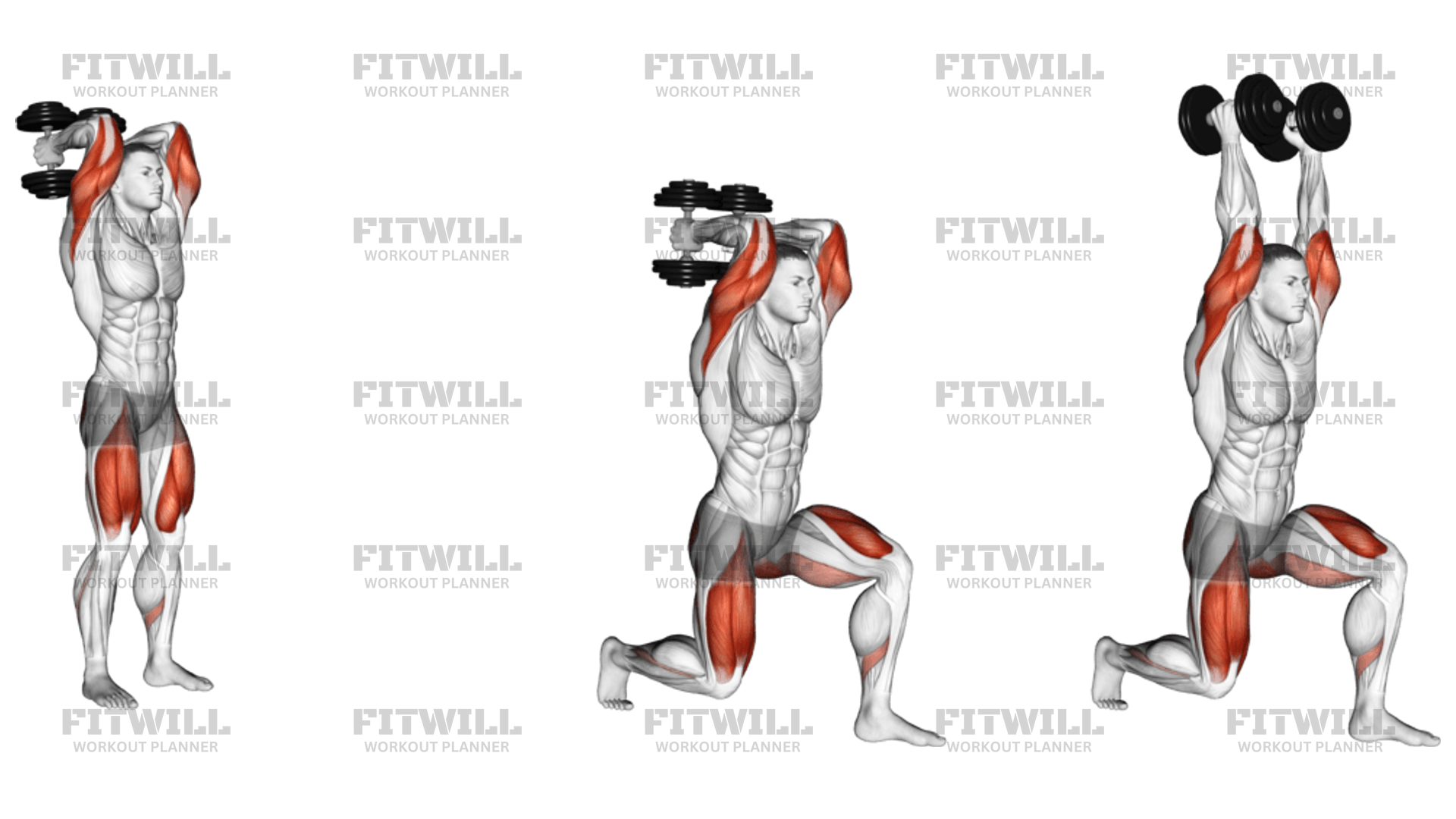 Dumbbell Forward Lunge Triceps Extension Exercise Guide Techniques Benefits How to Muscles Worked Tips Tricks Fitwill Very well made.