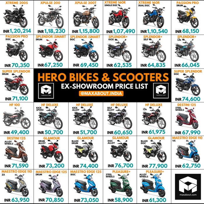 Hero Motorcycles Scooters Price List Jan 2021 Splendor Maestro Glamour Destini Xpulse Very well made.