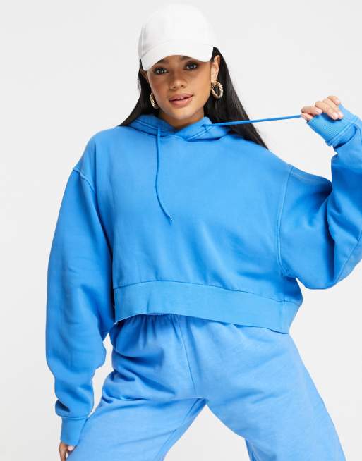 Weekday Easy cotton co ord cropped hoodie in sky blue MBLUE Very well made.