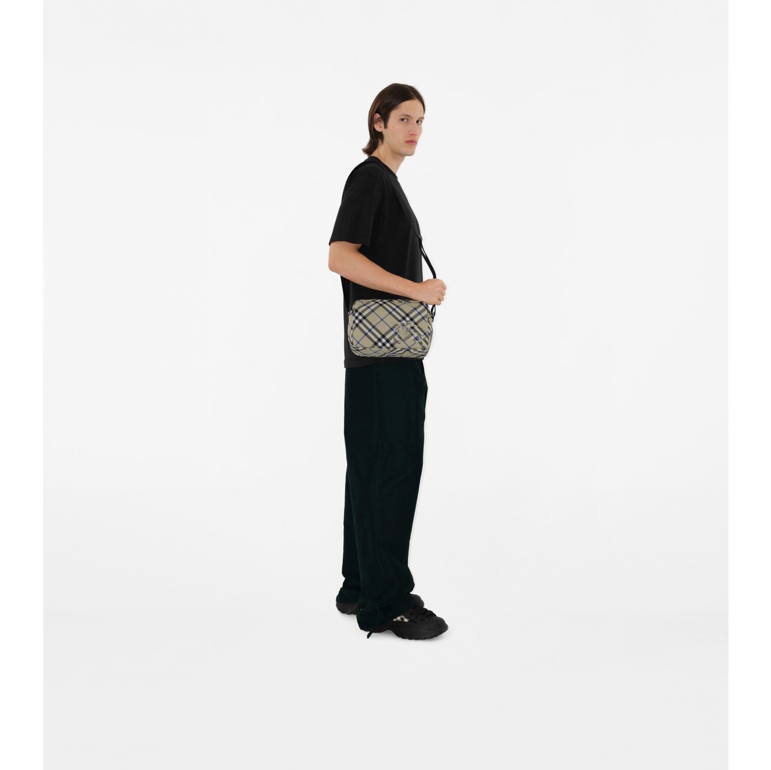 Check Crossbody Bag in Lichen Men Nylon Burberry Official Very well made.
