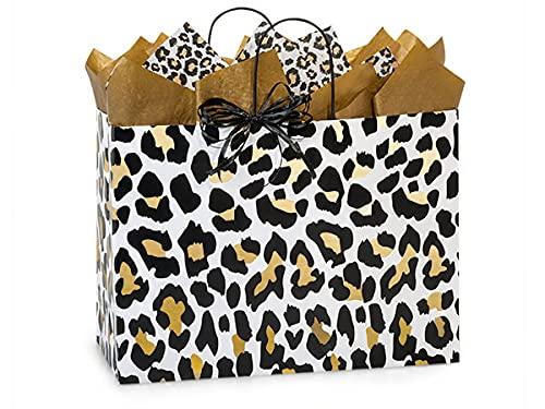 25 Pack Golden Leopard Paper Shopping Bags Vogue 16x6x12.5 for Party Holiday Events Made in USA Very well made.