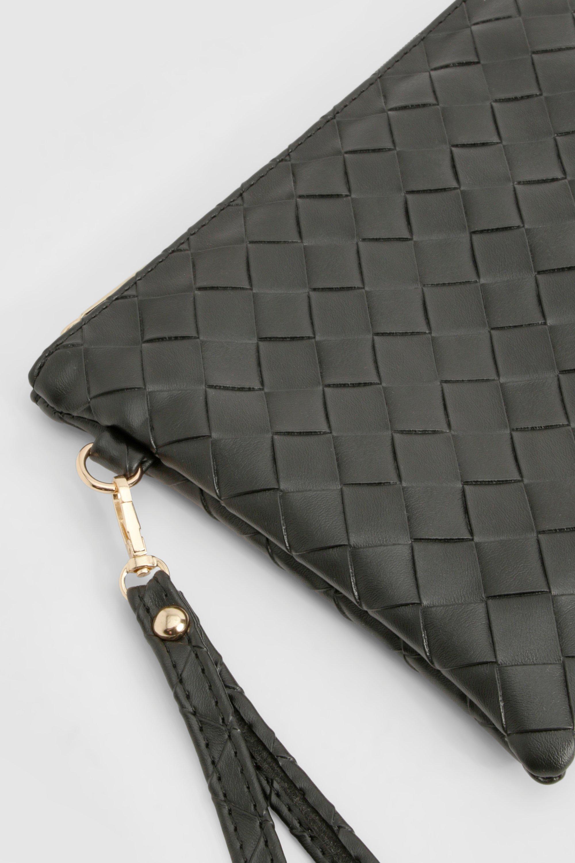 Woven Leather Look Clutch Bag boohoo Very well made.