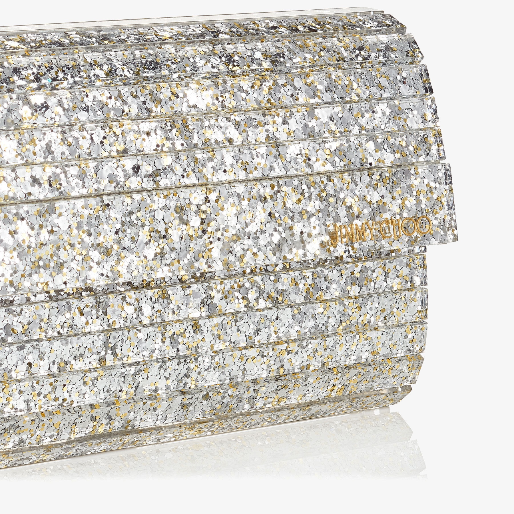JIMMY CHOO Sweetie Champagne Coarse Glitter Acrylic Clutch Bag REVERSIBLE Very well made.