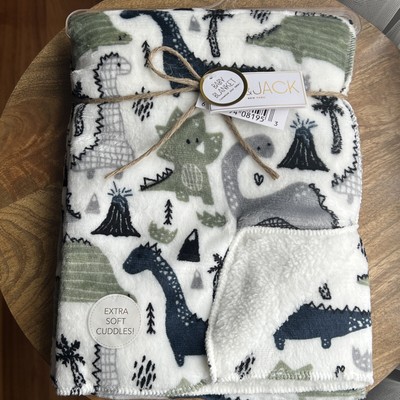 Lila Jack Dinosaur Dino Baby Blanket Green Blue Gray White Soft Sherpa New Very well made.