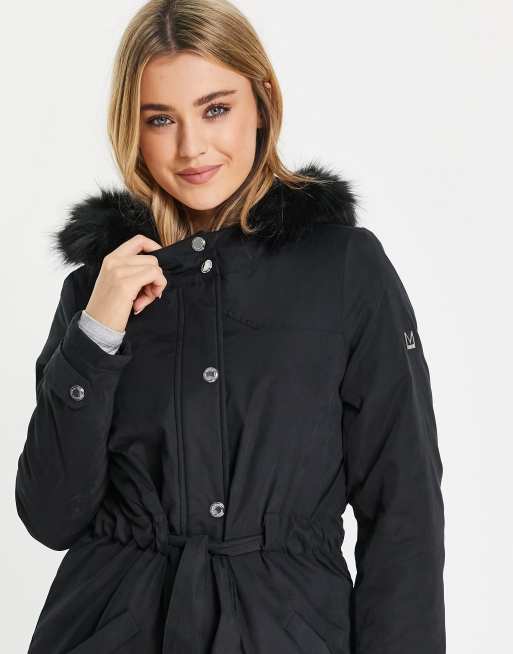 Morgan Parka nero con cappuccio con finitura in pelliccia sintetica ASOS Very well made.