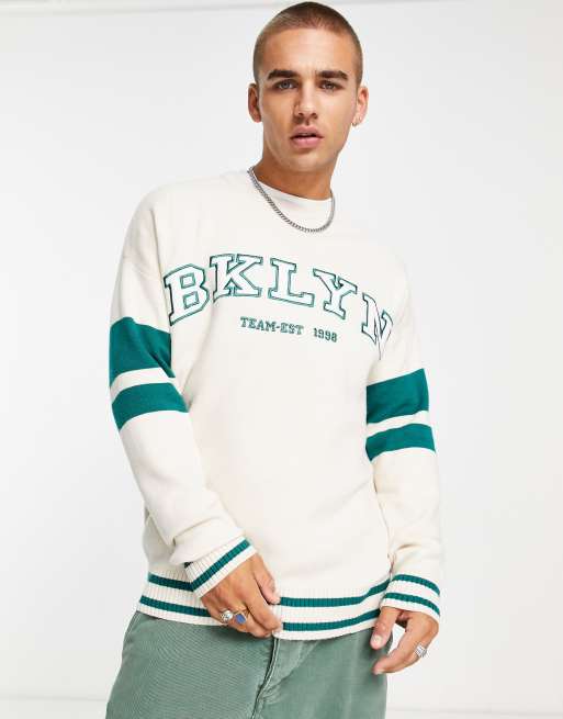 Bershka Brooklyn printed sweatshirt in ecru Very well made.