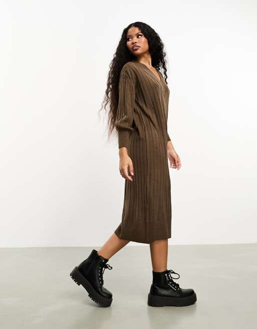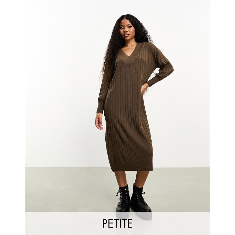Only Petite Robe longue en maille a col en V Marron ASOS Very well made.